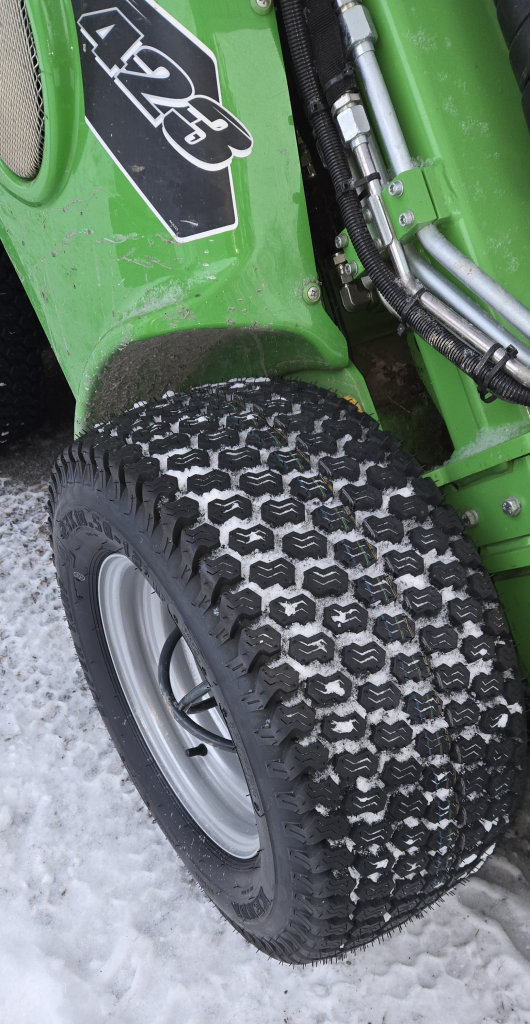Tiistaina kävin Avantilta hakemassa uudet nurmirenkaat A:iin, josko niissä olisi parempi pito kuin traktorikuvioisissa. Samalla reisulla kävin tekemässä Lielahden Liikussa 90 minuutin salitreenin. Kolmen vartin mattojuoksun tein vasta illalla kotona, jotta pääsin nopeammin takaisi töiden pariin. Matolla juoksin noin 6.5 kilometriä. Lopussa nostin vauhdin jo 9.5 km/h. Myöhempään illalla vaihdoin A:iin uudet renkaat alle ja tein pienen testilenkin. Vaikea vielä sanoa, onko paremmat. Pitää odottaa lisää lunta että pääsee tositoimiin.